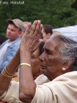 Endlich ist wieder Ruhe eingekehrt, in dem 500 Seelen-Dorf Abentheuer im Hunsrück. Shrishtikarta sitzt vor einem riesigen Bananen-Eis mit Sahne. Er kann wieder durchatmen, sein Eis genießen. Die letzten Gäste, die der Tempel in diesem Jahr zu Janmastami beherbergt hatte, haben sich mit ihren Zelte und Wohnmobilen in alle Winde zerstreut. Erst in etwa einem Jahr wird wieder ein solcher Andrang beim Radha-Krishna-Tempel etwa einen Kilometer ausserhalb von Abentheuer herrschen. Das vergangene Wochenende stand ganz im Zeichen von Janmastami, eines der wichtigsten hinduistischen Feste. Man könnte es mit dem christlichen Weihnachten vergleichen, auch hier feiern die Gläubigen das Erscheinen ihres Gottes Krishna, dem Allanziehenden. Eine weitere Gruppe Gläubiger ist stets Gast bei Janmastami: Männer und Frauen, die sich zu den Anhängern der Hare-Krishna-Bewegung zählen. Der Tempel bei Birkenfeld ist der größte Tempel in Deutschland, der die Gottheiten Radha-Krishna verehrt und den Hare-Krishna-Anhänger bewirtschaften. So zieht dieses Fest jedes Jahr hunderte Hindus aus Sri Lanka und Indien an, die im Dreiländereck Deutschland-Frankreich-Luxemburg leben. In diesem Jahr bestand gleich doppelter Anlass zum Feiern. Denn mit Janmastami weihten die Gläubigen auch den Tempel offiziell ein. Kein Wunder also, dass 500 Gäste das Gelände rund um den Tempel bevölkerten. Und wenn Hindus feiern, dann ist alles im Überfluss da: Musik, Gesang und vegetarische Köstlichkeiten. Kinder mümmeln an einem Stück Pizza, lutschen Soße von dem frisch gebackenen Fladenbrot, während die Erwachsenen gespannt die Weihe des Kalash verfolgen. Diese Messingzinne wird in Zukunft den Tempel vor aller Unbill schützen, sie ist zugleich Symbol, dass der Tempel Krishna geweiht ist. Die Gläubigen singen die Sutren mit, waschen sich rituell, sind in Gebete versunken. Priester bitten den Segen Krishnas herab, auf den Kalash, den Tempel, das Wasser, die Speisen und alle Anwesenden. Die Zinne ist nun auf dem Vordach des Tempels, Lieder, Musik, Beten und Lachen der Hunderte verklungen. Shrishtikarta zieht Bilanz: "Es war wie in jedem Jahr, wir konnten viel zu spät anfangen mit den Vorbereitungen, die letzte Woche bestand nur aus Hektik, dennoch hat alles geklappt, weil alle an einem Strang gezogen haben." Alle, das sind die etwa fünfzig Anhänger von Hare-Krishna, die auf dem Anwesen rund um den Tempel, in Abentheuer selbst und der näheren Umgebung leben. | Was bringt einen Schweizer dazu, den elterlichen Betrieb zu verlassen und sich einer Sekte anzuschließen? Denn als Christoph Kraft, so der bürgerliche Name von Shrishtikarta, sich Anfang der Achtziger den Hare-Krishna-People anschloss, genoss diese Sekte einen eher zweifelhaften Ruhm. Männer und Frauen in safranfarbenen Gewändern mit einem gelben Symbol auf der Stirn zogen durch alle etwas größeren Städte. Mit dem stets gleichen Lächeln, drängten sie Passanten, ihnen Bücher abzukaufen. Und jeder der sich auf ein Gespräch einließ und nur einen Funken Skepsis zeigte, wurde mit starken Worten und eingefrorener Freundlichkeit belehrt, wer hier im Besitz der ewigen Wahrheit war: Nur der, der nach dem Krishna-Bewusstsein strebte. Shrishtikarta grinst, wenn er sich das wieder vor Augen hält: "Ja, damals waren die Krishnas noch sehr pubertär." Dies habe sich inzwischen sehr geändert. Aber auch er sei damals, Ende der Siebziger auf der Suche nach Inhalt für sein Leben gewesen. "Für mich war schnell klar, dass die Arbeit im Betrieb meiner Eltern mich nicht zufrieden stellt." So sei er nach Indien gereist, habe dort erste Kontakte mit dem Hinduismus gemacht. Nach langem Prüfen und Suchen habe er für ich sagen können: "Ein Anhänger von Hare Krishna zu sein, war genau das was ich wollte." Srila Prabhupada, ein gebürtiger Bengale gründete 1966 die ISKCON (International Society for Krishna Consciousness, Internationale Gesellschaft für Krishna Bewusstsein) und damit eine der Jugendreligionen der siebziger und achtziger Jahre. Ihre Lehren sehen sich in der Nachfolge der uralten vedischen Schriften der Bhagavad-Gita sehen. Einige Kernpunkte wie das Krishna-Bewusstsein zu erreichen ist: Jeder Gläubige versucht Krishna mindestens 1728 pro Tag zu huldigen. Man verzichtet auf Rauschmittel jeder Art, auch Alkohol, Kaffee und Zigaretten. Ferner leben, die Krishna-Anhänger streng vegetarisch, verzichten auf Fleisch, Fisch und Eier, nicht aber auf Milch und einige Milchprodukte. Dazu dürfen die Hare-Krishnas Sexualität nur leben, um Kinder zu zeugen. Ansonsten müssen sie enthaltsam leben. Das alles mag für manchen recht freudlos klingen, doch die Hare-Krishna-Anhänger kochen exzellent, feiern gerne rauschende Feste, wie auch das Janmastami. Ziel aller Bemühungen und Feiern der Krishna-Anhänger ist es, die Liebe zu Gott in jedem wiederzuerwecken. Dadurch sei es möglich, ein friedliches Leben in Harmonie mit der Natur zu führen und zu den höchsten Stufen der Erleuchtung vorzudringen. In den Jahren der Sturm und Drang-Zeit habe die Hare-Krishna Bewegung viele Fehler gemacht, sich anderen Menschen und deren Überzeugungen gegenüber ins Unrecht gesetzt. Die ISKCON habe in den letzten Jahren verstärkt frischen Wind durch die verstaubten Ideen fegen lassen, meint Shrishtikarta. So sei man von der anfänglichen Praxis abgekommen, Jugendliche in den Tempel aufzunehmen. Menschen, die sich einer Hare-Krishna Gemeinschaft anschließen wollten, müssten eine abgeschlossene Ausbildung haben. Jüngere Aspiranten sei man nur bereit für einige Wochen aufzunehmen. | Auch die rigorose Forderung, Anweisungen des Meisters unbedingt zu folgen, sei vom Tisch. "Da geht es inzwischen viel mehr darum, jede Anweisung des Meisters mit dem eigenen gesunden Menschenverstand zu prüfen, bevor der Schüler handelt", erklärt Shrishtikarta. Obwohl auch homosexuelle Gruppen in der Hare-Krishna-Bewegung existieren, bezweifelt Shrishtikarta, dass diese das volle Krishna-Bewusstsei